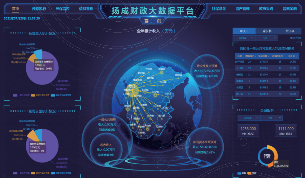 平臺釆用海量數(shù)據(jù)存儲,大數(shù)據(jù)挖掘與可視化技術,實現(xiàn)預算執(zhí)行、社保基金、債務管理、資產(chǎn)管理、政府釆購、投資評審、普惠金融等7大板塊業(yè)務數(shù)據(jù)的采集、分析與應用。目前在全國已擁有10余個典型案例。
